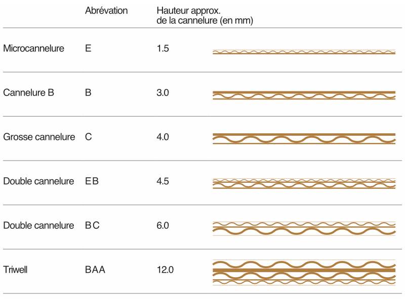 Carton ondulé simple cannelure : pour des marchandises légères jusqu’à 15 kg.